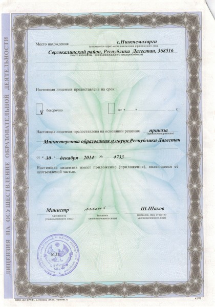 | Адрес местонахождения образовательной организации* | 368516, Республика Дагестан, Сергокалинский район, с. Нижнее Махарги |